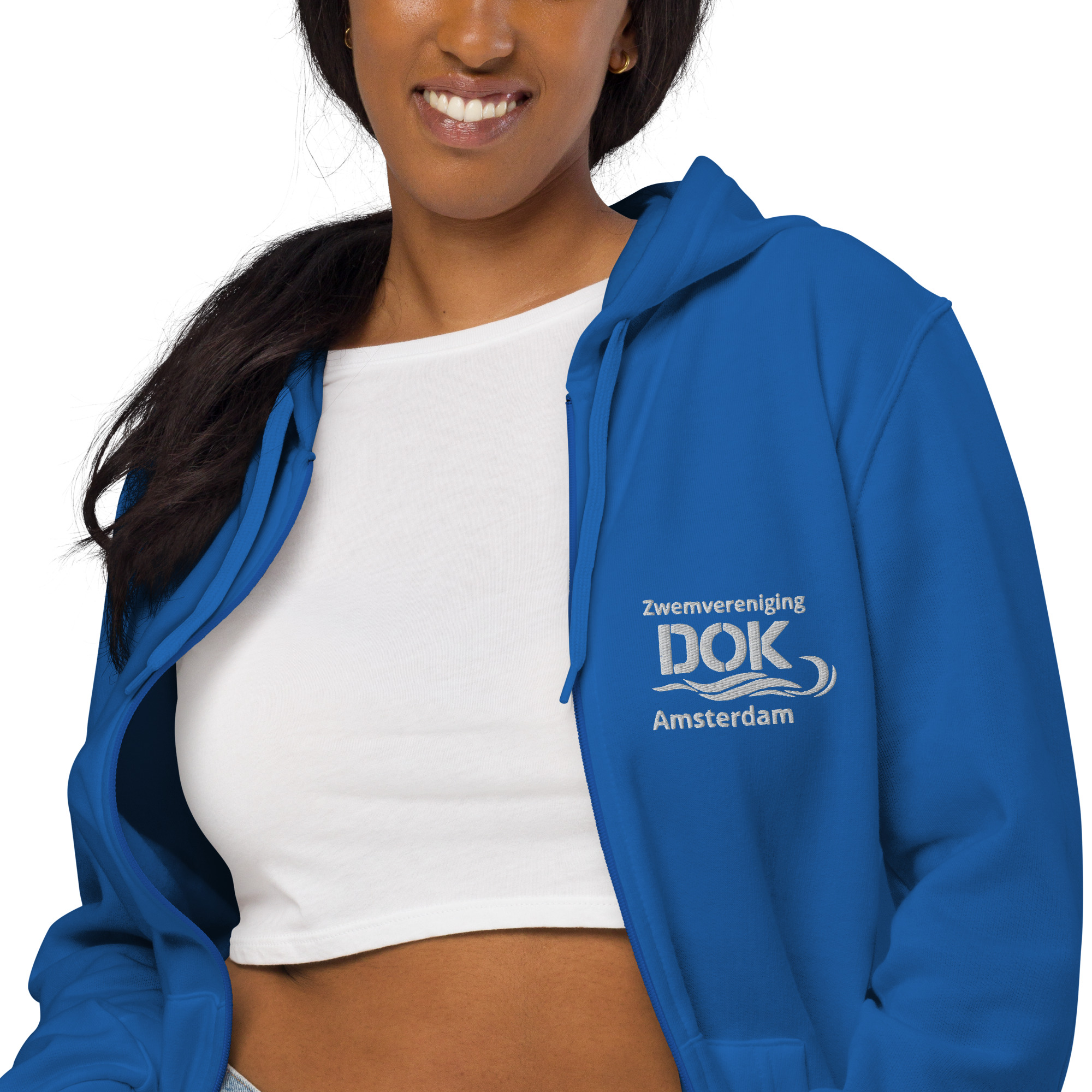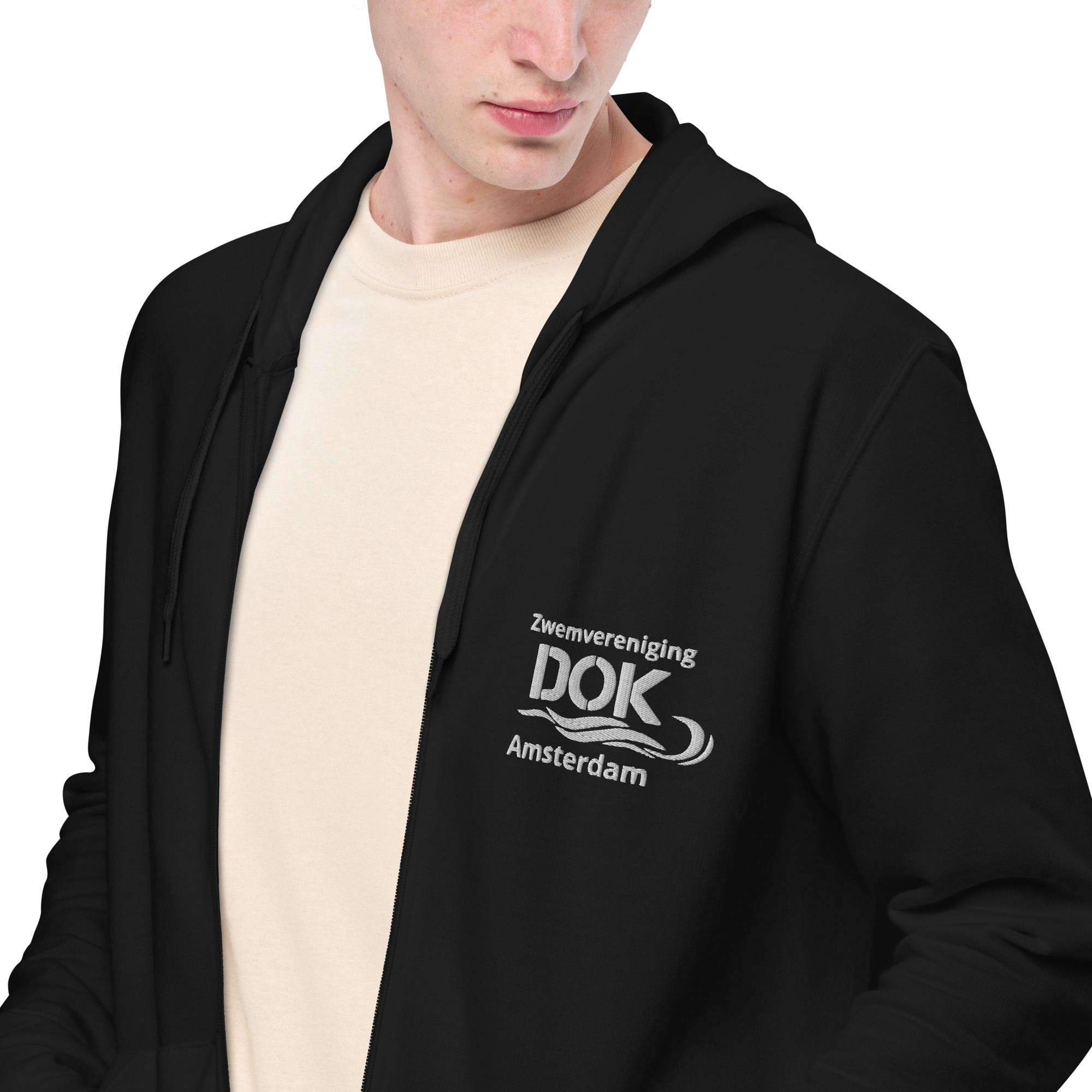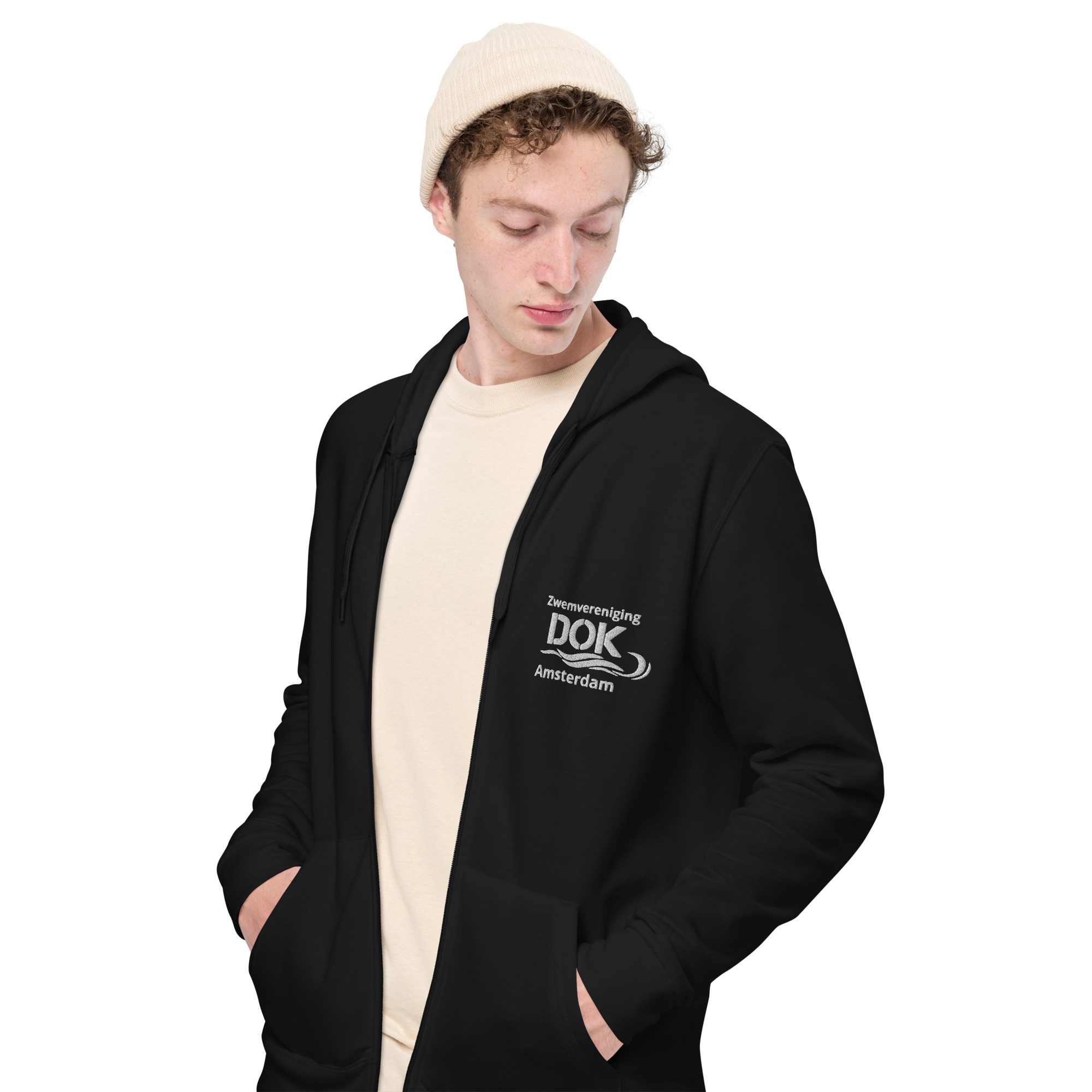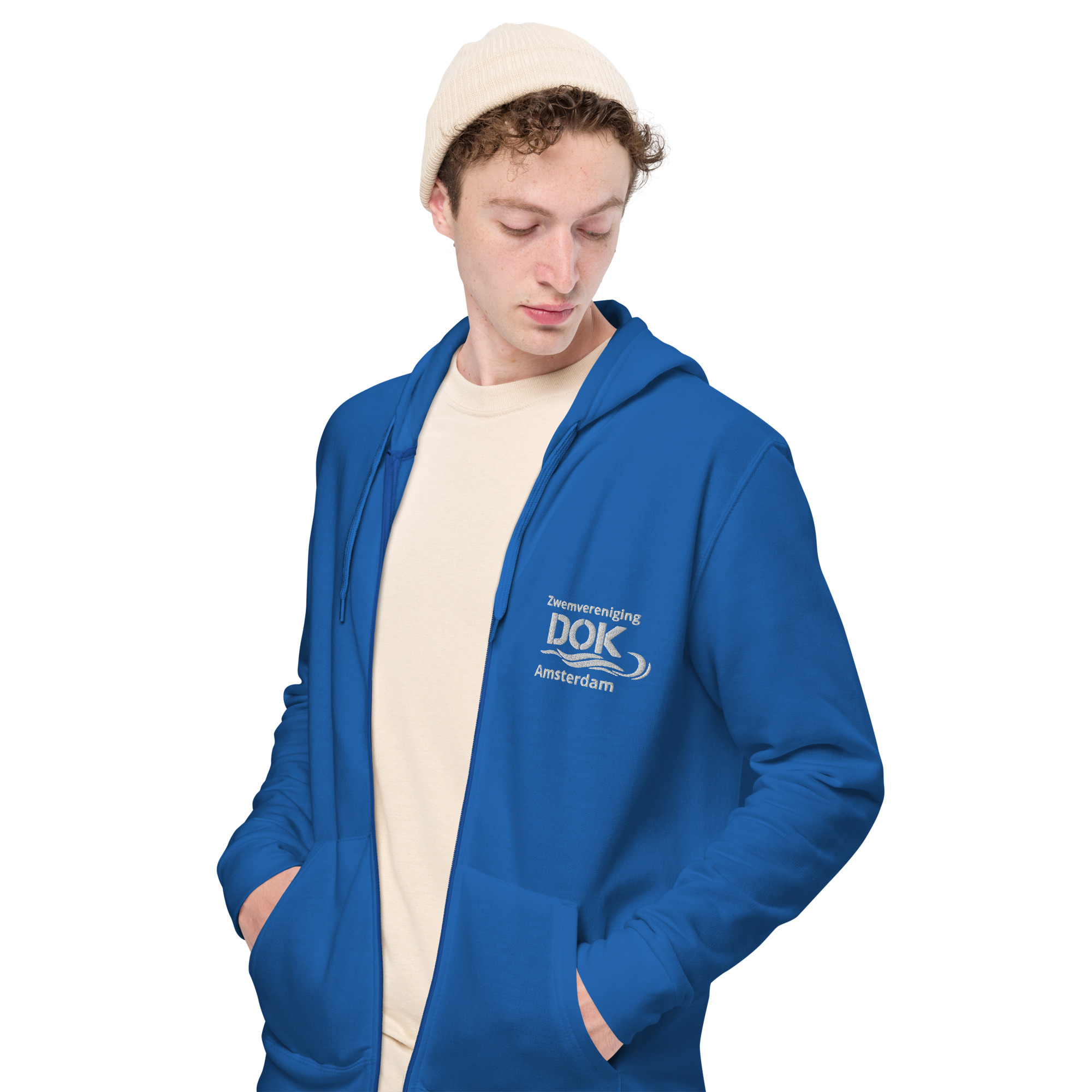 This custom unisex zip hoodie has a brushed fleece inside, a hood with matching color drawstrings, and 2 handy kangaroo pockets. The comfortable fit and light fabric make it a must-have athleisure item.
